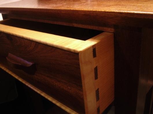 and wax. The cockbeads on the drawers are curly maple, and the drawer bodies are