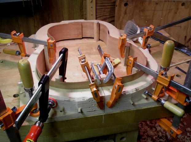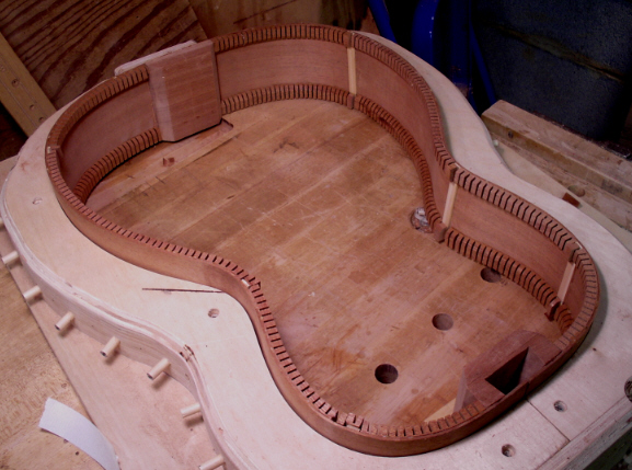 ensure that the sides don't split, and I have glued in the tail and neck blocks and linings as well. I made