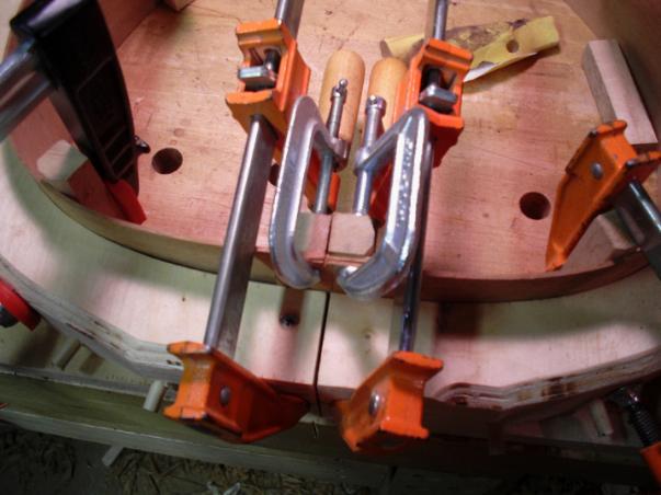 place. I secured the overlapping ends of the sides with two sets of clamps, using two of my side cauls