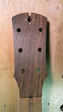 veneering the headstock. The truss rod is a curved bar of steel that can be tightened to put upward