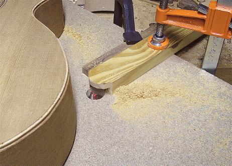 to keep the stop from getting pushed out of position as I moved the guitar right-to-left against the cutter's