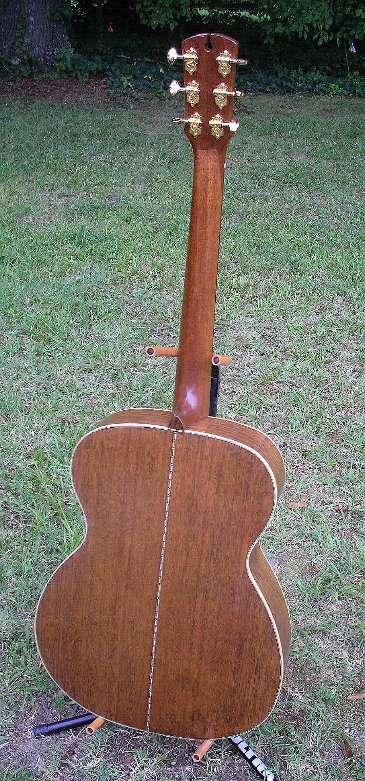 grain filler to the mahogany surfaces. I did the finish sanding and took the guitar in this state up to