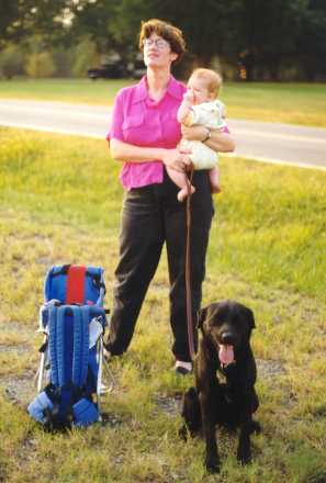 Jennifer and Julia enjoy the Statesville Baloon Rally while Ouachita poses happily. 1998. |