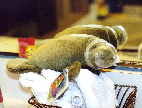Julia gave the this fellow a fruit-cup helmet and announced "Mommy! Manatee in Space!"
