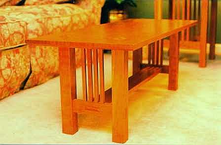 Coffee table. 1997. Solid cherry, natural finish. 42"x17"x16" tall. My design.
